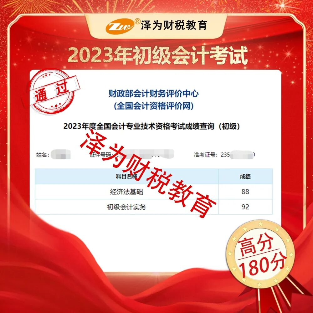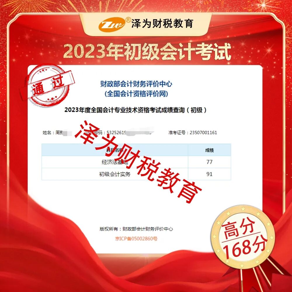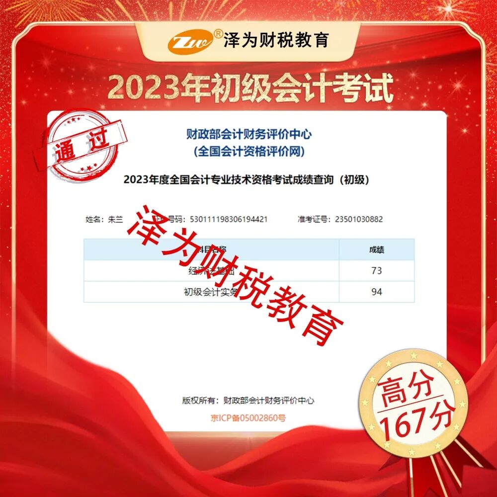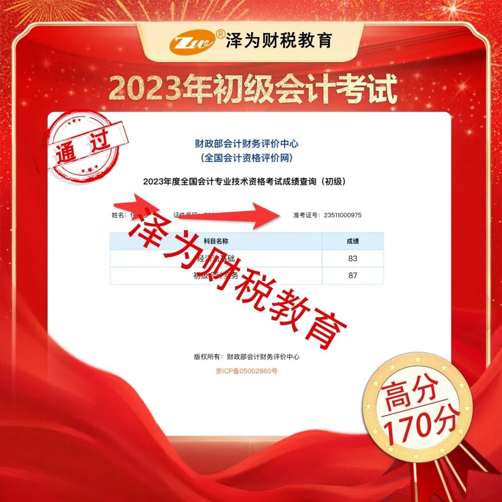 考试期间大家都说很简单!成绩出来后纷纷来给我们报喜,祝贺大家,成绩是我们双方努力的共同结果,老师的教学重要,但是努力的每一位同学你们更重要!再次祝贺所有过关考生,也祝贺泽为教育2023初级再创佳绩!