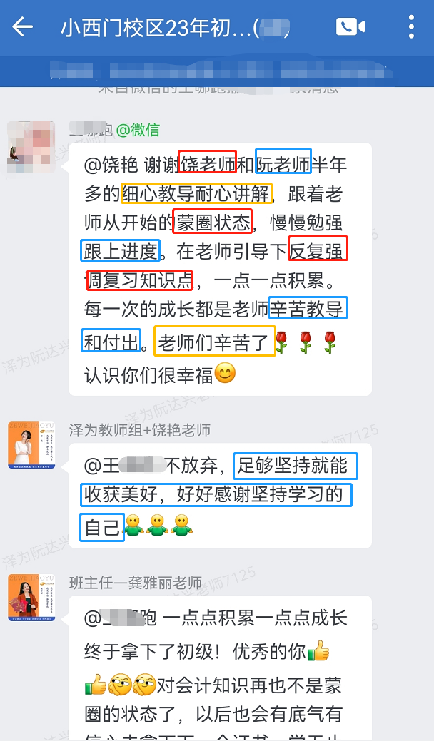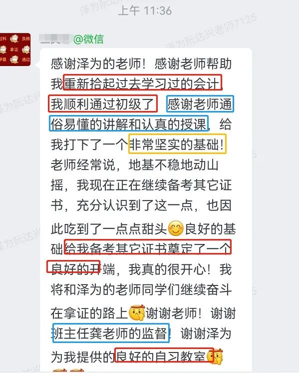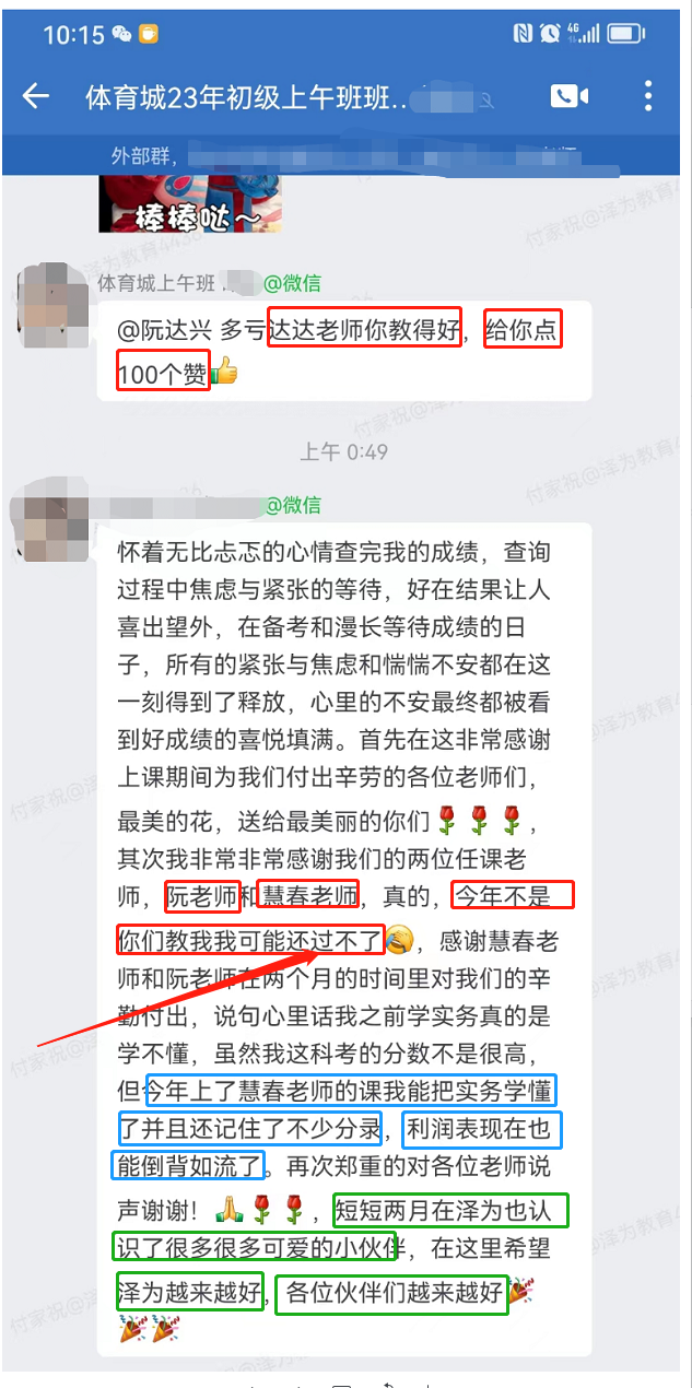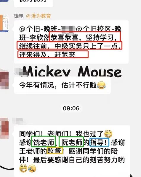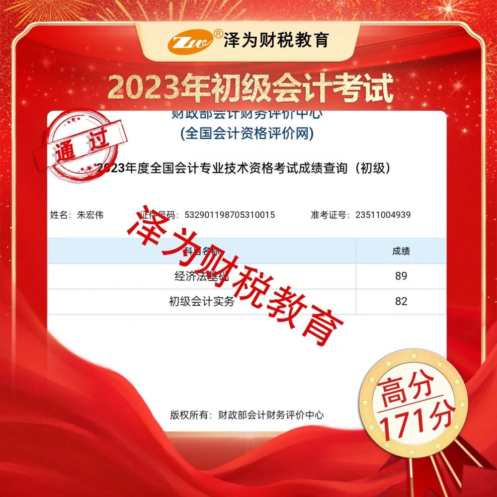 考试期间大家都说很简单!成绩出来后纷纷来给我们报喜,祝贺大家,成绩是我们双方努力的共同结果,老师的教学重要,但是努力的每一位同学你们更重要!再次祝贺所有过关考生,也祝贺泽为教育2023初级再创佳绩!